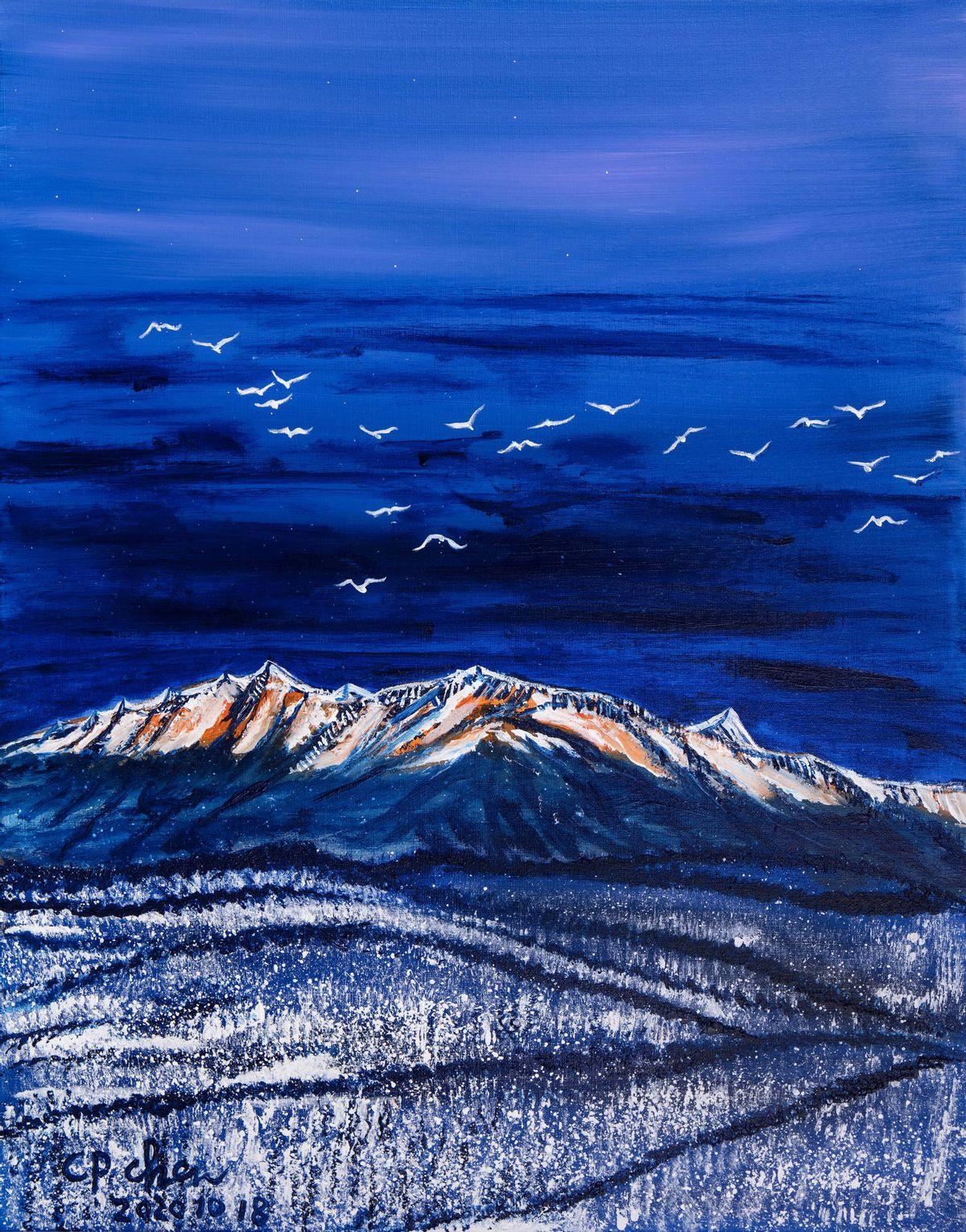 眾鳥高飛盡,孤雲獨去閑。相看兩不厭,唯有敬亭山。30F 布面丙烯 2020 年