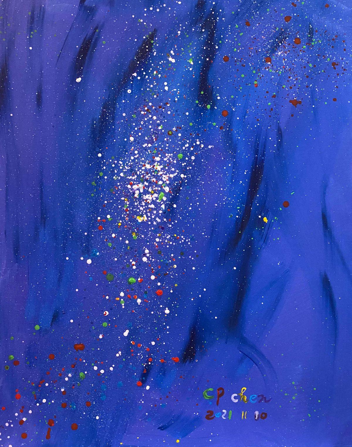 雲母屏風燭影深,長河漸落曉星沈。30F 布面丙烯 2021 年