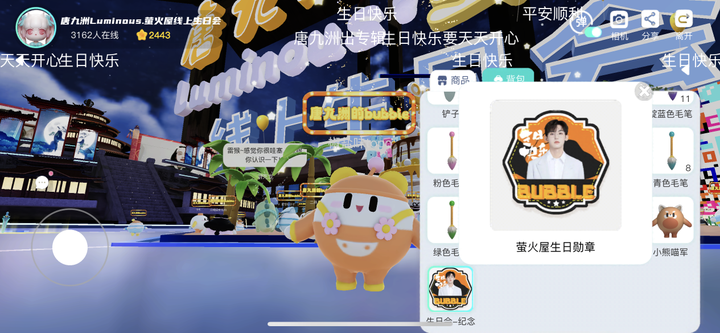 活动中还利用虚拟现实技术的交互性,设计出惊喜加码环节:让现场用户,可以共同点亮限定版生日蛋糕,充分调动了用户的参与感。在生日会的最后,各位参与用户还能获得专属【定制勋章】作为纪念,仪式感满满,暖心程度可见一斑。